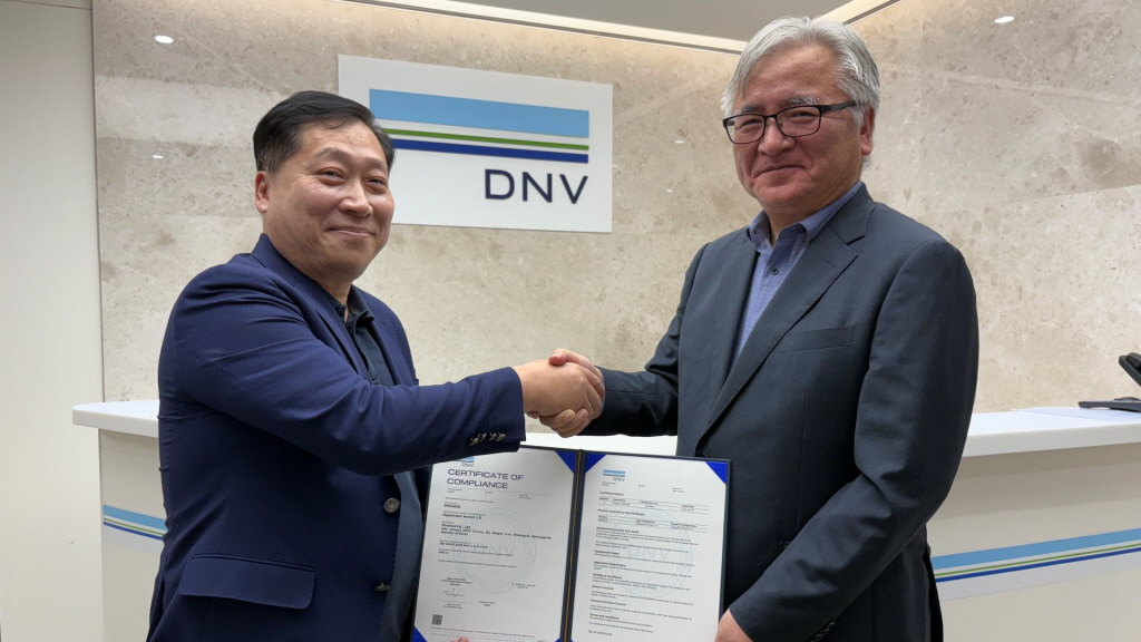 ▲서상범 페르세우스 대표(좌측)와 이장섭 DNV코리아 대표(우측)이 ISO 26262 ASIL-D 인증서를 들고 기념촬영을 하고 있다.