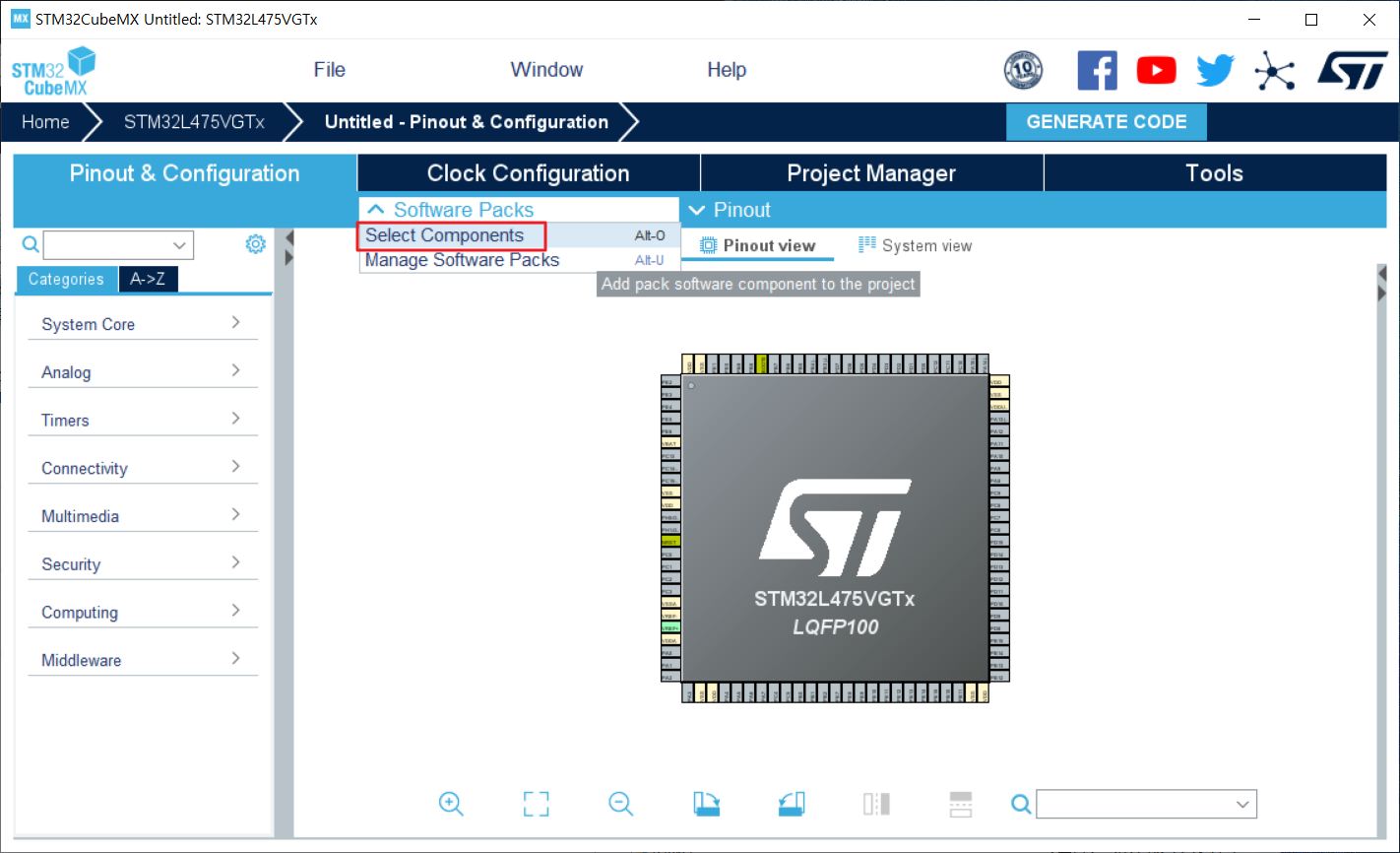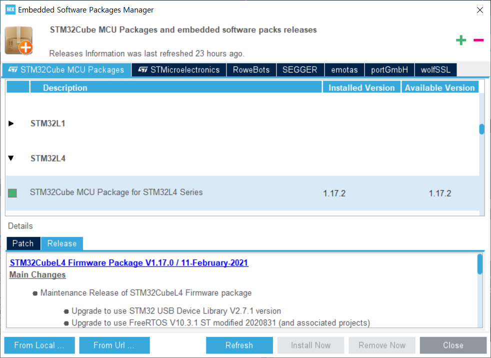 - Embedded Software Package Manager - STM32Cube MCU Packages 탭에서 STM32L4 Series 설치