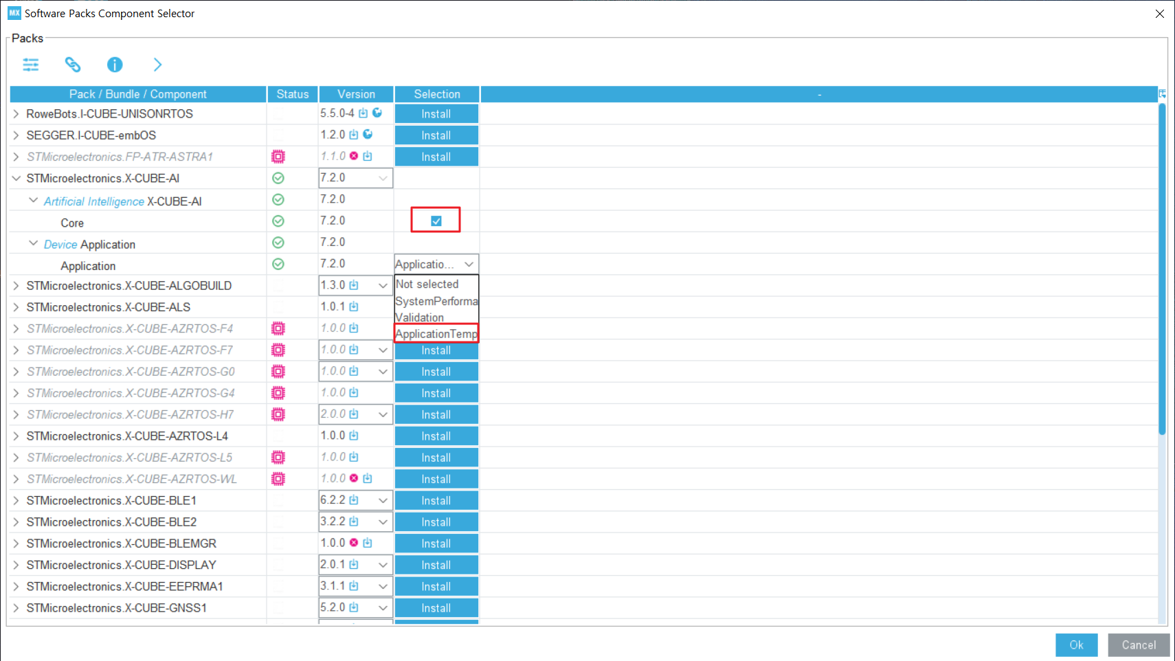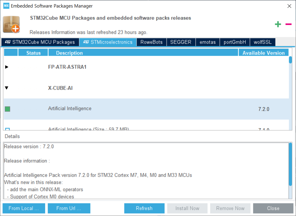 - Embedded Software Package Manager - STMicroelectronics 탭에서 X-CUBE-AI 설치