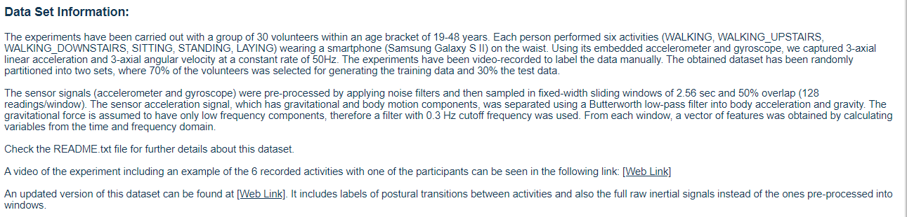 UCI 에서 smartphone으로 만든 데이터셋을 이용하여 학습한 모델을 많아서 적용하게 되었습니다.