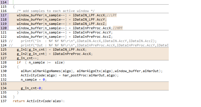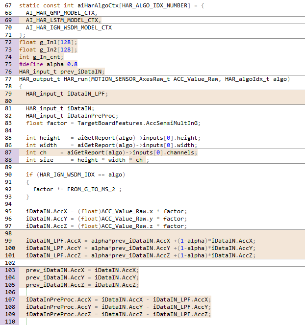 위에서 생성된 ai 소스코드(har_lstm.c/h, har_lstm_data.c/h)를 FW pkg에 적용합니다.
