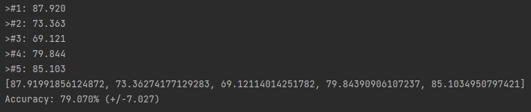 5회 학습했을때 정확도가 높았다 낮았다 하면서 79% 나왔습니다.