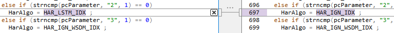 코드 변경: 원본 코드에서 HAR_IGN으로 적용되어 있던 부분들을 모두 HAR_LSTM으로 변경하는 형태로 코드를 대체하면서 변경하였습니다. 일부 변경 코드 형태를 아래와 같이 그림으로 보여드립니다.