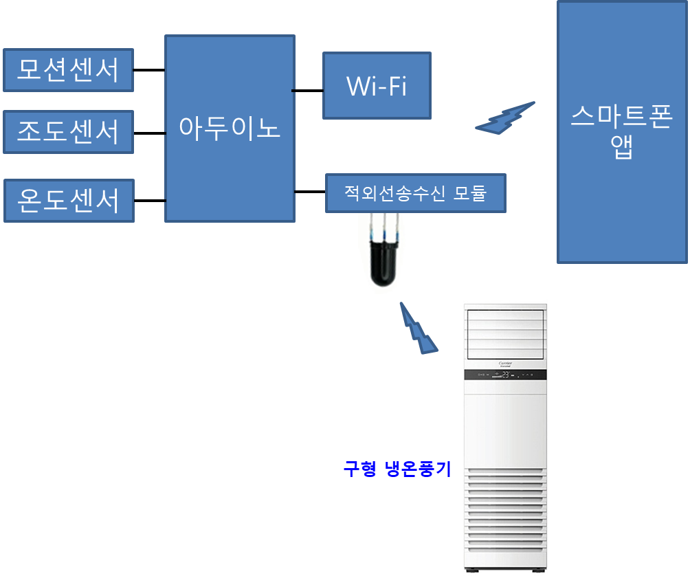 냉난방기가 10년도 훌쩍 지난 모델이라 기본 기능외에 별다른 스마트한 기능이 없는데 여기에 IoT 기술을 이용하여 스마트한 기능을 더해보고자 합니다.