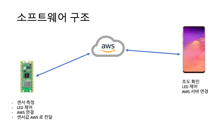 본 프로젝트는 AWS와 Raspberry Pi Pico W를 사용하여 스마트폰으로 원격으로 현재 조도를 측정하고 Pico W에 연결된 컬러 LED를 제어할 수 있는 프로젝트 입니다.