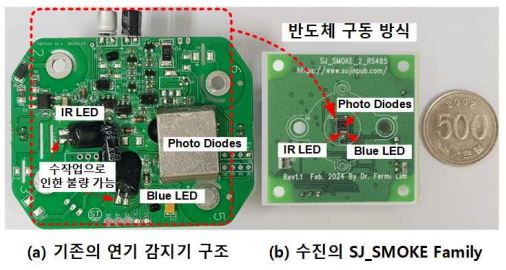 기존 광전식 감지기와 SJ_SMOKE 구조 비교