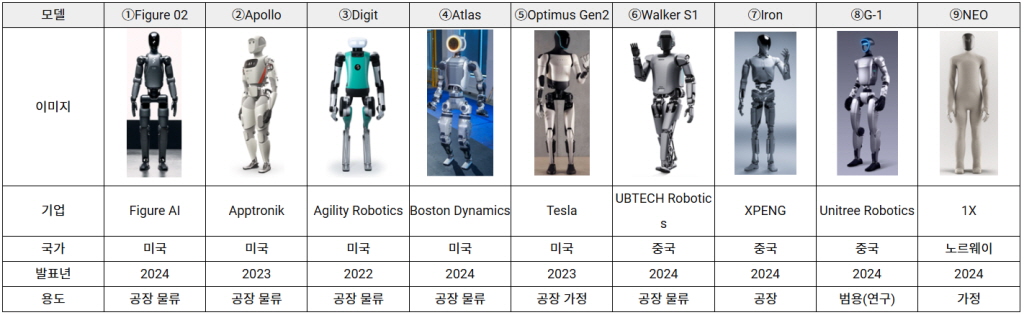 ▲현재 개발 중인 각국 휴머노이드 로봇(자료 : SOMPO Institue Plus Report)
