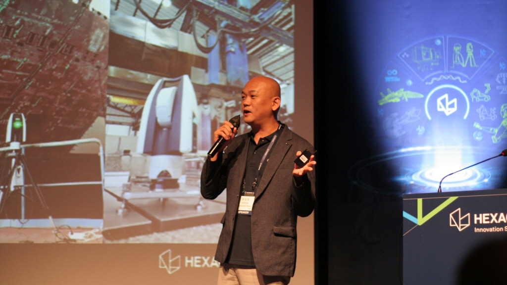 ▲문장희 헥사곤(Hexagon) NBD 팀장이 Leica Absolute Tracker ATS 800에 대해서 발표하고 있다.