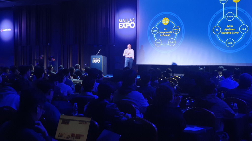 이번 행사에서는 한국전자통신연구원(ETRI) 임흥식 본부장의 차세대 통신 기술 전망 발표를 비롯해, 매스웍스 본사의 사비르 박사가 ‘엔지니어링 설계에서의 AI 혁신’을 주제로 기조연설을 진행했다.