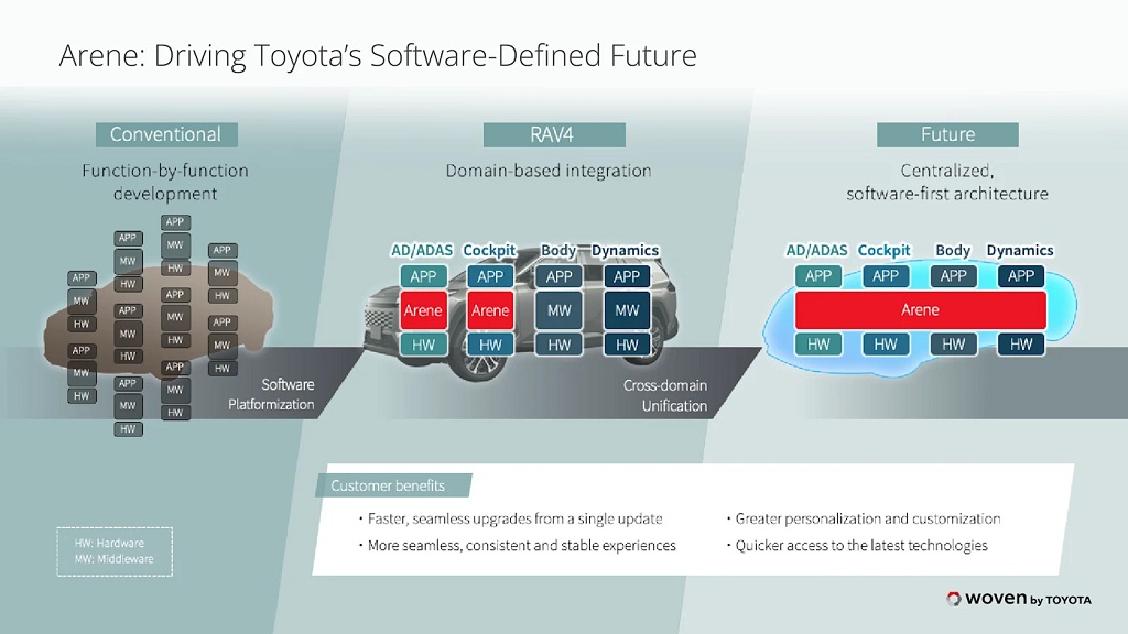 또 다른 SDV로 토요타의 자회사인 Woven by Toyota의 Arene이 주목받고 있다.