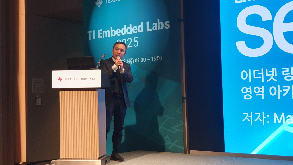 이날 기술 발표에서 박성일 TI 이사는 ‘AM26 MCU를 활용한 이더넷 링 아키텍처 설계로 존 아키텍처 간소화하기’라는 주제로 발표했다.
