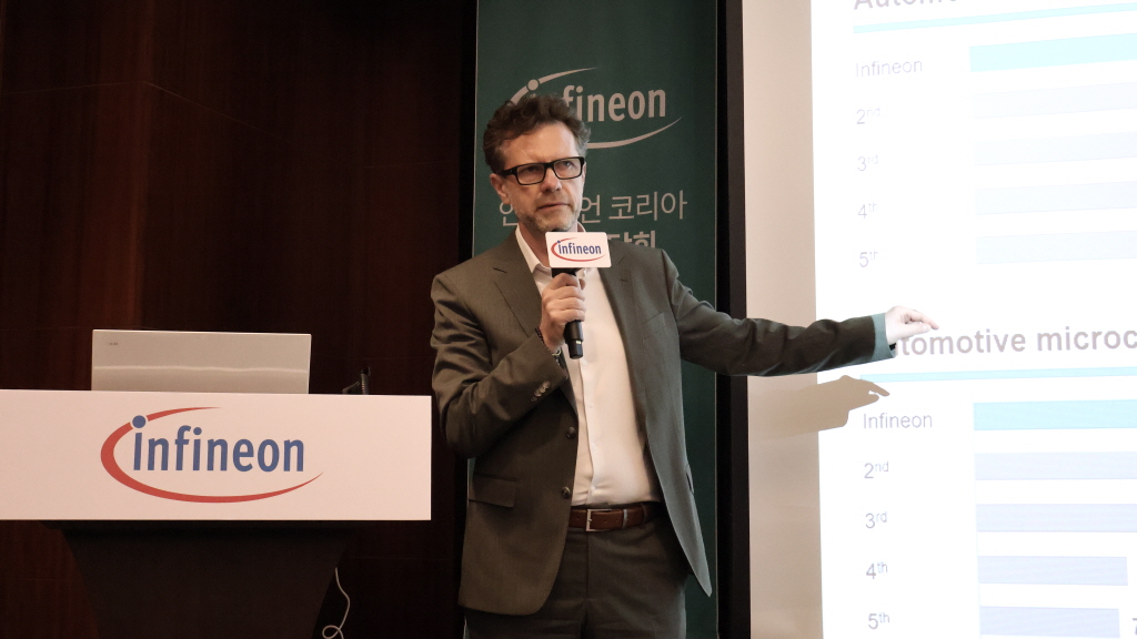 토마스 뵘 수석부사장은 “자동차 산업이 ‘기계적 성능’ 중심에서 ‘소프트웨어 기능’ 중심으로 빠르게 이동하는 가운데, 인피니언이 자동차 반도체 분야에서 축적해 온 기능 안전, 보안 통신, 고성능 마이크로컨트롤러(MCU) 기술이 SDV 전환의 ‘기반’이 되고 있다”며 “2025년 자동차 마이크로컨트롤러 시장에서 36% 점유율을 기록했고 전년 대비 4%포인트 확대했다”고 밝혔다.