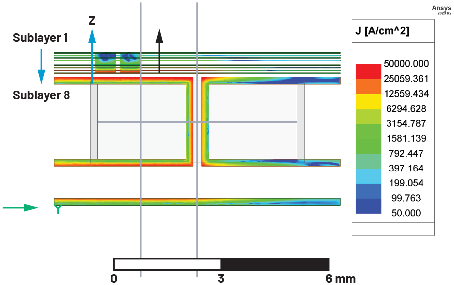 ▲그림 10. 구리 하위층에서의 와전류 밀도