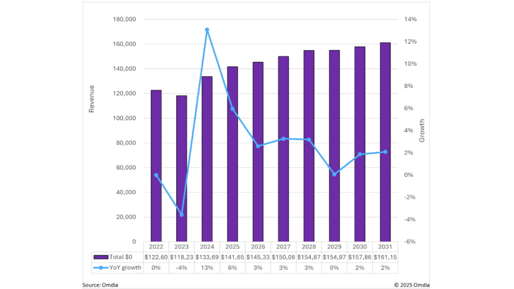 옴디아(Omdia)가 최근 발표한 ‘2025 디스플레이 산업 분석, 급변하는 환경에 대처하는 법’이라는 보고서에 따르면, 평판 디스플레이 시장은 2024년 약 1,340억달러 규모에서 2025년 1,450억달러로 성장할 전망이며, 향후 5년 내 1,600억달러 이상의 시장 규모로 확장될 것으로 예측된다.