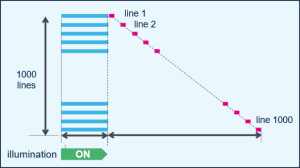 각 행을 노출하는 동안 센서는 동시에 데이터를 처리하여 점진적으로 완전한 프레임을 구축한다.