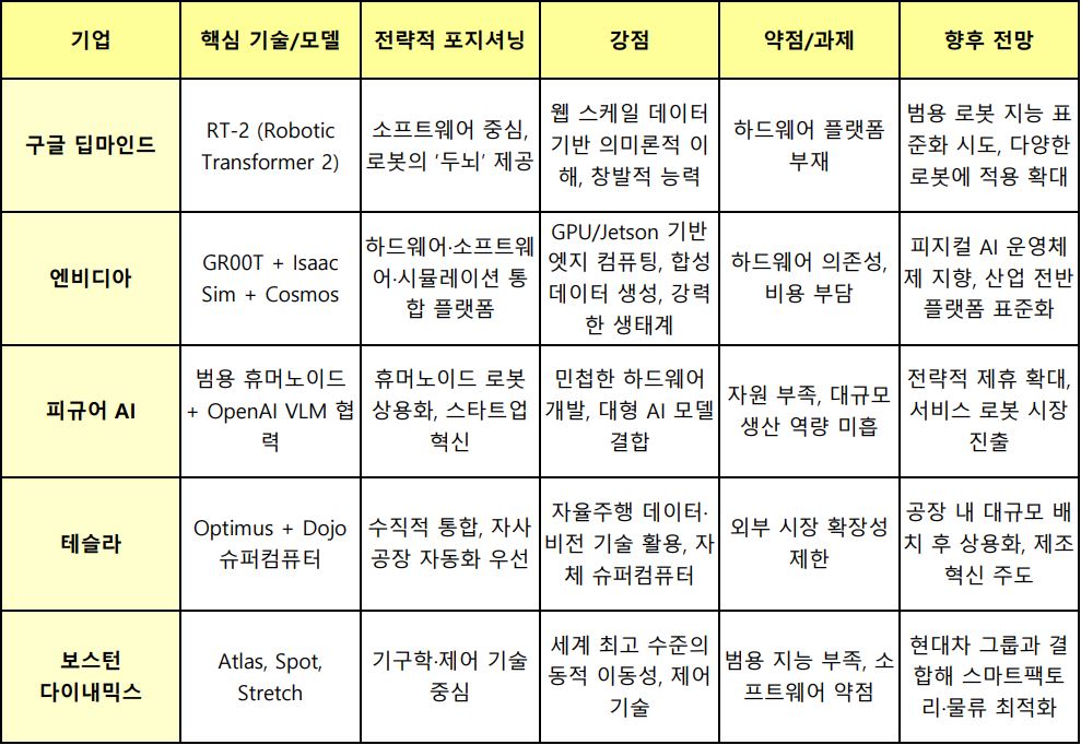 글로벌 기업들의 전략은 단순히 기술 경쟁을 넘어, 하드웨어·소프트웨어·데이터·통신을 통합하는 플랫폼 경쟁으로 확장되고 있다.