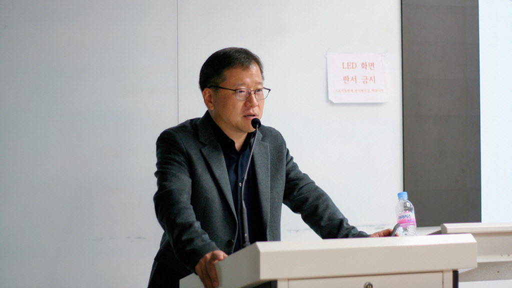 ▲김성동 서울과기대 교수가 ‘첨단 패키징 기술 동향’에 대해 발표하고 있다.