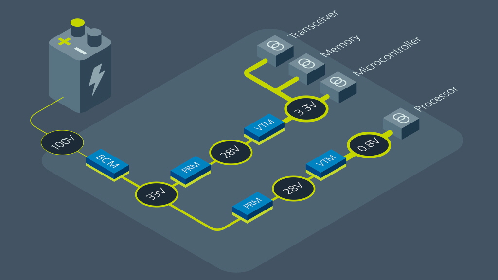 바이코의 내방사선 전력 모듈은 △절연 및 28V 스텝다운을 담당하는 BCM®(버스 컨버터 모듈) △전압 조절하는 PRM™(프리레귤레이터 모듈) △28V DC를 0.8V로 변환하는 VTM™(전압 변환 모듈) 등으로 구성돼 있다.