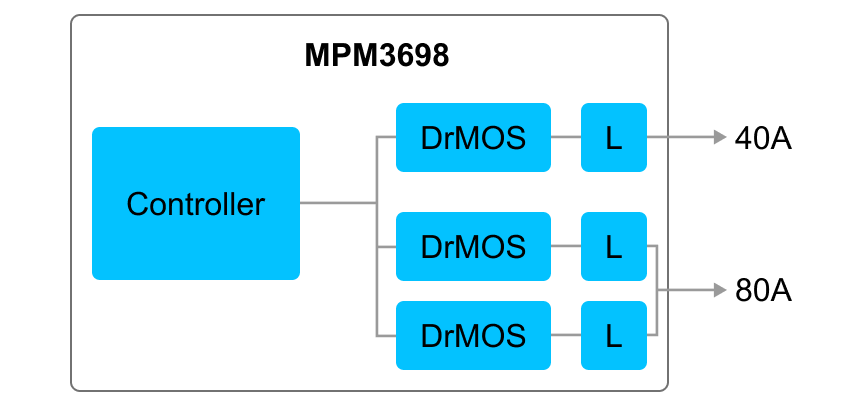 MPM3698 및 MPM3699와 같은 장치는 전력을 여러 위상으로 분배함으로써 효율을 개선하고, 열 스트레스를 줄이며, 더 작은 입·출력 커패시턴스만을 필요로 한다.