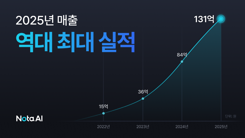 노타는 2월 11일 지난해 연간 매출이 전년 대비 55.3% 증가한 131억 원을 기록했다고 밝혔다. 2022년 약 15억 원이던 매출은 2023년 36억 원, 2024년 84억 원으로 늘었고, 지난해 131억 원으로 증가했다. 최근 3년간 연평균 성장률은 100%를 웃도는 수준이다.