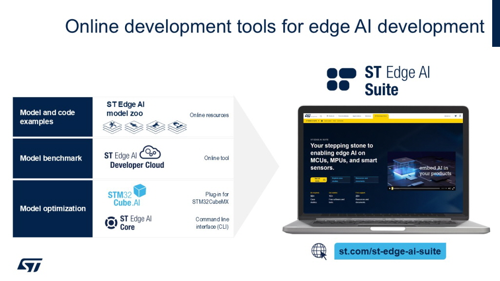 이를 통해 고객들은 ST의 AI 에코시스템을 기반으로 다양한 AI 모델 포트폴리오와 사용 사례를 통해 영감을 얻고, 간단하고 직관적인 과정을 통해 AI 모델을 만들며 단 몇 분 만에 ST 하드웨어 플랫폼에 적용할 수 있다.