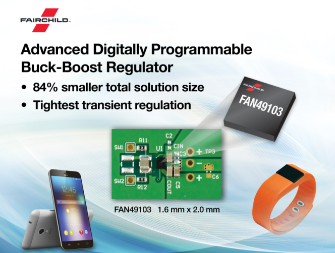 페어차일드가 스마트폰, 태블릿 및 기타 배터리 구동 휴대용 장치에서 사용되는 전원 공급 장치의 최첨단 디지털 방식의 프로그램이 가능한 벅 부스트 레귤레이터를 출시했다.