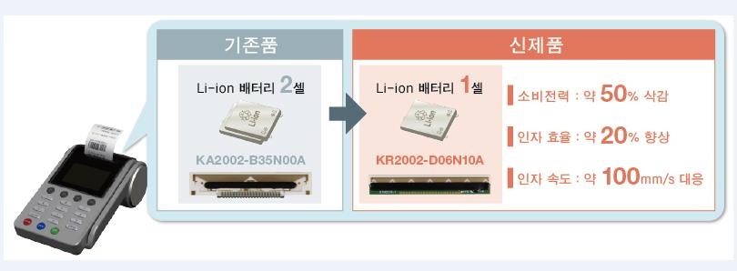 그 중에서도 결제 단말기 등의 영수증 용도로 사용되는 서멀 프린트 헤드는 최근 모바일 단말기 시장의 성장 추세에 따라, 기존의 고화질 및 고속 인자 요구와 더불어 저전력화 및 소형/경량화 요구도 높아져 1셀 전원 구동품의 서멀 프린트 헤드에 대한 수요가 증가하고 있다고 밝혔다.