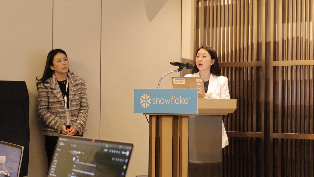 이수현 스노우플레이크 테크 에반젤리스트는 정형·비정형 데이터를 통합해 AI 에이전트를 구축하고, 거버넌스를 유지한 채 실시간 분석과 의사결정을 수행하는 과정을 직접 시연했다.