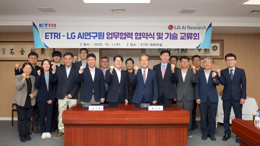 ETRI는 LG AI연구원과 인공지능(AI) 데이터 컴플라이언스 및 대규모언어모델(LLM) 공동 연구를 위한 업무협약(MOU)을 체결했다고 1일 밝혔다.