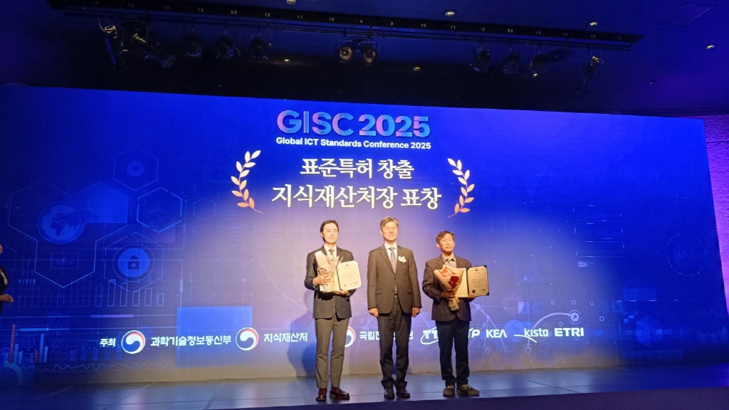 한국전자통신연구원(ETRI)이 국제표준특허 창출 성과를 인정받아 ‘2025 표준특허 창출 우수기관’으로 선정되며 지식재산처장 표창을 수상했다. 수상은 11월 3일 서울 양재동 엘타워에서 열린 ‘글로벌 ICT 표준 콘퍼런스(Global ICT Standard Conference, GISC)’에서 발표됐다.