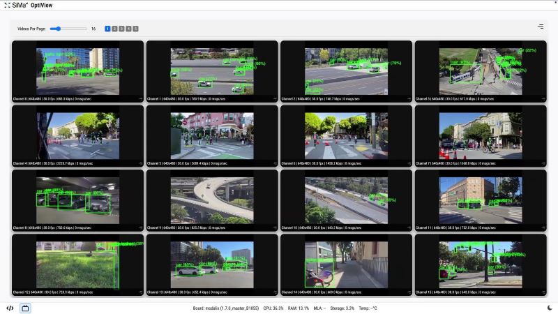 ▲시마AI의 Modalix 기반 16채널 비디오 AI 감지 파이프라인 시연 이미지