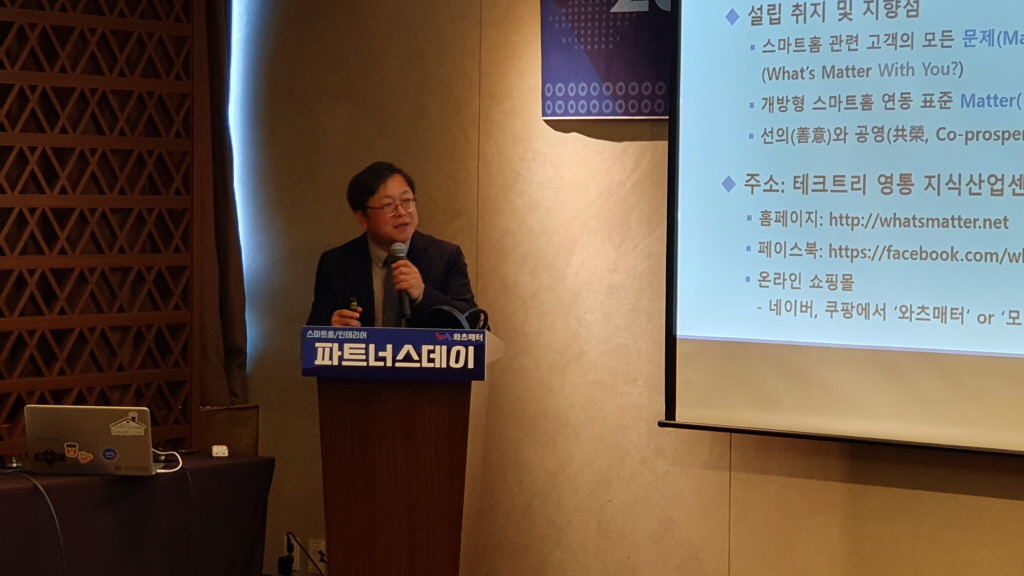 행사에서 와츠매터 김학용 대표는 회사의 성과와 비전을 공유하며 “스마트홈은 이제 대기업만의 사업이 아니라 누구나 참여할 수 있는 생활 서비스”라며 협력과 확산의 중요성을 강조했다.