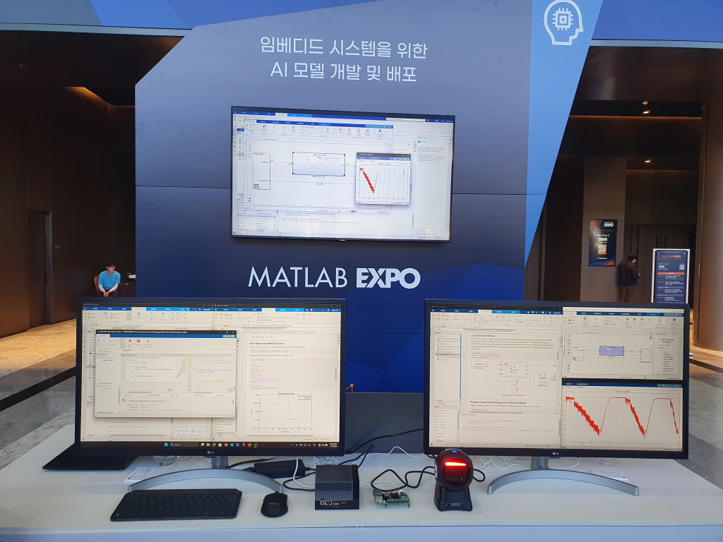 임베디드 시스템을 위한 초소형 AI 모델 개발과 배포 부스에서는 딥러닝 툴박스를 활용한 모델 경량화와 함께, R2026a 릴리즈에서 파이토치 및 라이트RT 모델을 별도 변환 없이 코드 생성에 활용할 수 있는 점이 특징이다. 이를 통해 온디바이스 AI 적용이 한층 수월해질 것으로 기대된다.