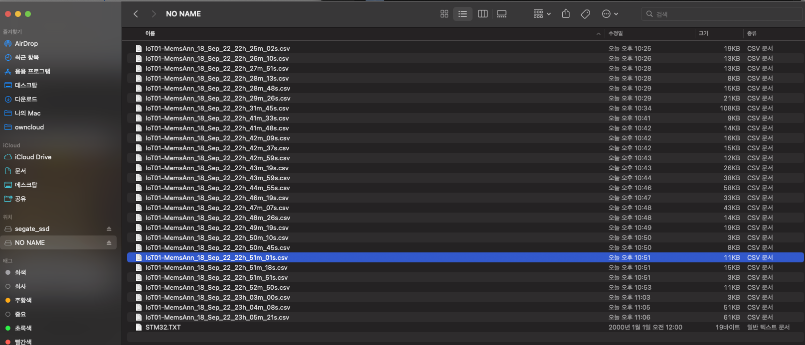 Quest4 B-L475E-IOT01A 보드 가속도 센서 활용하여 AI 모델을 위한 Dataset 구성하기