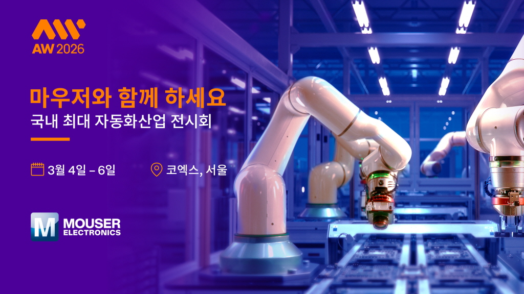 국내 최대 자동화 산업 전시회인 스마트공장·자동화산업전(AW 2026)에 글로벌 전자부품 유통기업 마우저 일렉트로닉스가 참가해 산업 자동화와 스마트 제조를 위한 다양한 온라인 지원 솔루션을 선보인다.