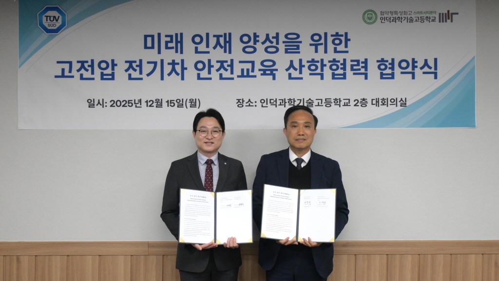 글로벌 시험·인증기관 티유브이슈드(TÜV SÜD)가 인덕과학기술고등학교와 함께 고전압 전기차 안전교육을 제공하고, 미래 모빌리티 인재 육성에 본격 나선다.