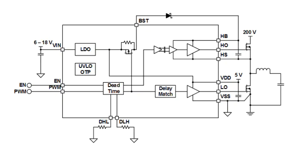 LMG1210은 50MHz 하프 브리지 드라이버로, 최대 200V 증가 모드 GaN FET과 함께 작동하도록 설계되었다.