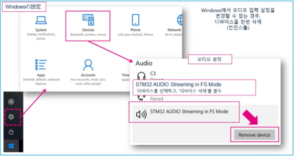 2. 오디오 디바이스로 "STM32 AUDIO Streaming FS Mode"가 인식되므로 이를 일단 삭제합니다(언인스톨).
