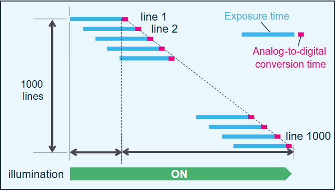 각 행을 노출하는 동안 센서는 동시에 데이터를 처리하여 점진적으로 완전한 프레임을 구축한다.