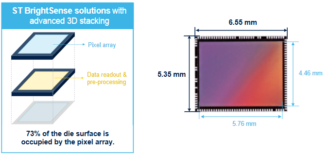 따라서 ST는 두 개의 웨이퍼를 매우 효율적으로 제작하고 결합해, 글로벌 셔터 모드에서만 지원되는 유사한 5메가픽셀 CMOS 센서와 비교해도 경쟁력을 유지하면서 두 가지 셔터 모드를 제공할 수 있다.