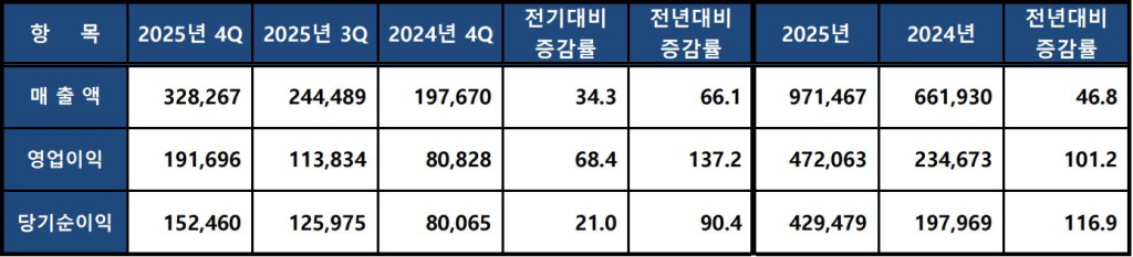 이번 실적은 기존 최고치였던 2024년을 크게 상회하는 성과다.