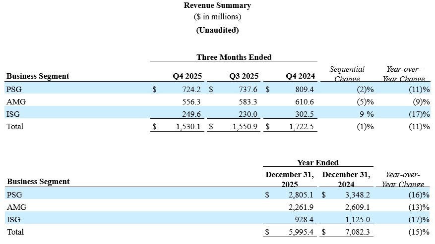 온세미는 2월 11일 2025년 4분기 및 회계연도 연간 실적을 발표하고, 4분기 매출이 15억3천만 달러를 기록했다고 밝혔다. 같은 기간 일반회계기준(GAAP) 총이익률은 36%, 비일반회계기준(non-GAAP) 기준으로는 38.2%를 나타냈다. 영업이익률은 GAAP 기준 13.1%, non-GAAP 기준 19.8%로 집계됐다.