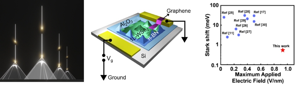 UNIST는 23일 물리학과 남궁선·김제형 교수팀이 스타크 효과를 억제한 2차원 반도체 기반 고순도 단일양자광원을 개발했다고 밝혔다. 관련 연구 결과는 국제학술지 ‘나노 레터스(Nano Letters)’에 3월 11일 온라인 게재됐다. 이번 연구에는 사티아브라트 베헤라 연구원과 문종성 연구원이 제1저자로 참여했다.