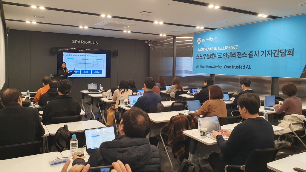 스노우플레이크(Snowflake)는 20일 스파크플러스 코엑스점 지하 2층에서 ‘스노플레이크 인텔리전스 출시’ 기자간담회를 진행했다.