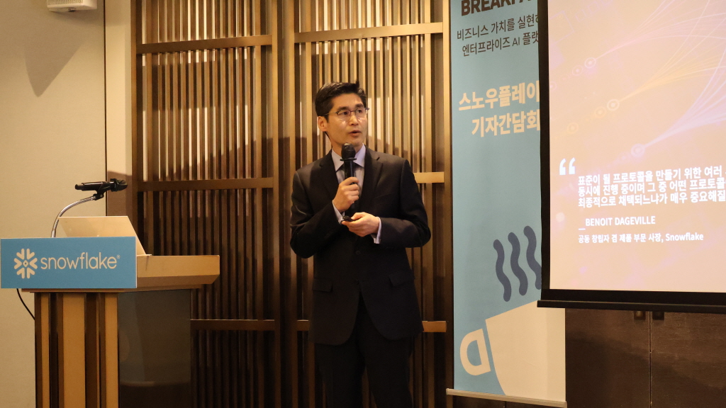 스노우플레이크는 19일 서울 앰배서더 서울 풀만 호텔에서 ‘DATA FOR BREAKFAST’ 관련 기자간담회를 열고, 엔터프라이즈 AI 전략과 주요 기술 업데이트를 공개했다.