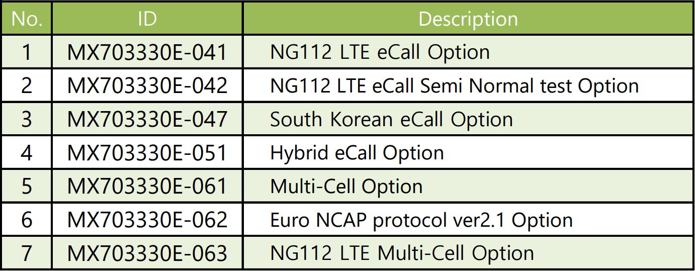 MX703330E 및 MD8475B 외 추가 안리쓰(Anritsu) 장비는 없다. 다만, 현재 보유하고 있는 옵션 구성은 아래와 같다.