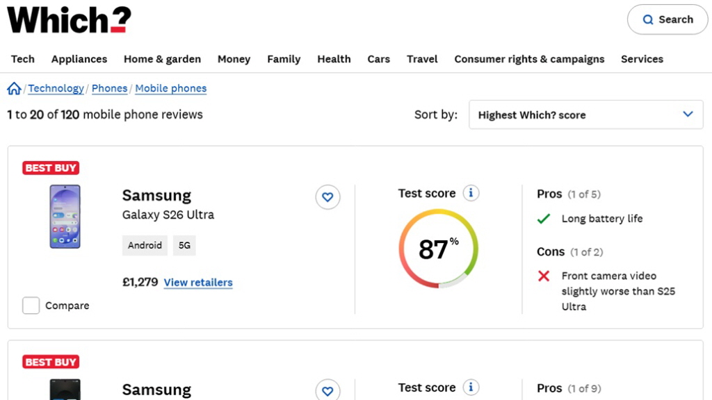 평가는 지난달 11일 갤럭시 S26 시리즈 출시 이후 이뤄졌다. 영국의 위치, 프랑스의 크 슈아지르, 이탈리아의 알트로콘슈모, 스페인의 오씨유, 포르투갈의 데코 프로테스트, 벨기에의 테스트 아차트, 스웨덴의 레드앤론 등 유럽 각국 소비자연맹지가 갤럭시 S26 울트라를 최고 스마트폰으로 선정했다.