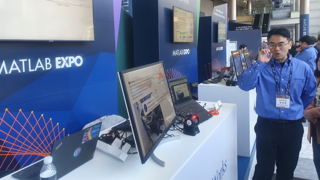 ▲류성연 매스웍스 엔지니어가 데모부스를 소개하고 있다.