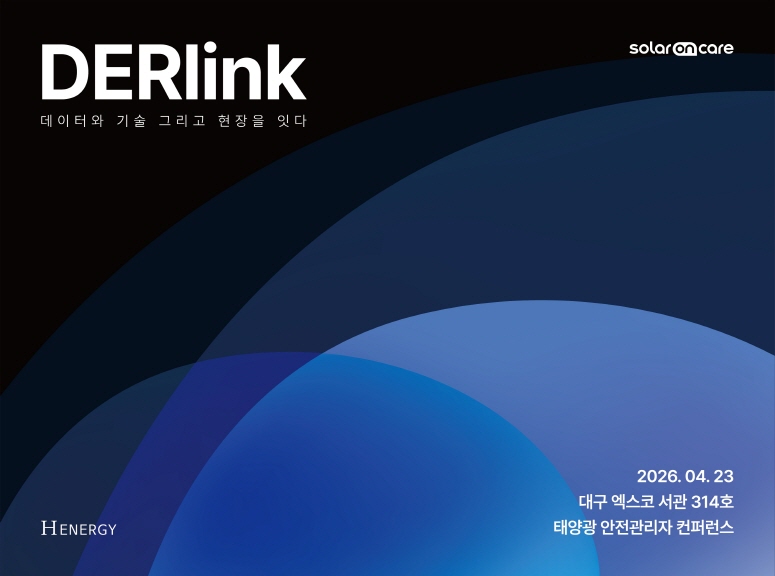 에이치에너지는 4월 23일 대구 엑스코(EXCO)에서 분산에너지 행사 ‘DERlink’를 개최한다고 밝혔다. ‘DERlink’는 분산에너지자원(DER)과 연결(Link)을 합친 이름으로, 현장 설비와 데이터, 운영 기술을 연결하겠다는 의미를 담고 있다.