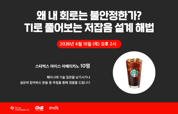 Texas Instruments와 함께하는 전원 설계 웨비나 세션이 포함되어 있습니다.